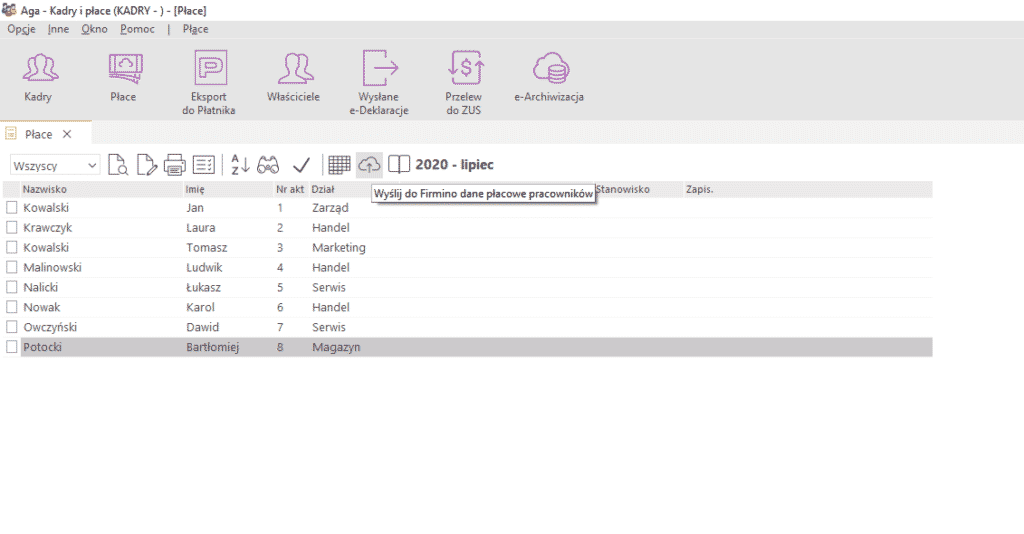 Przesyłanie listy płac (PDF) z programu Aga na konto klienta w Firmino
