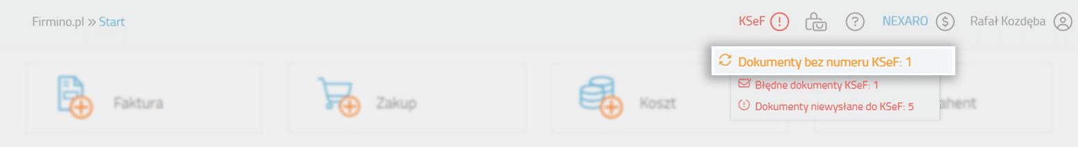 1. Kliknij czerwoną ikonę KSeF z wykrzyknikiem w górnej belce systemu.