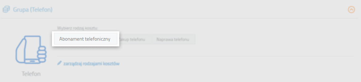 Następnie wybierz odpowiednią grupę kosztową (np. telefon).